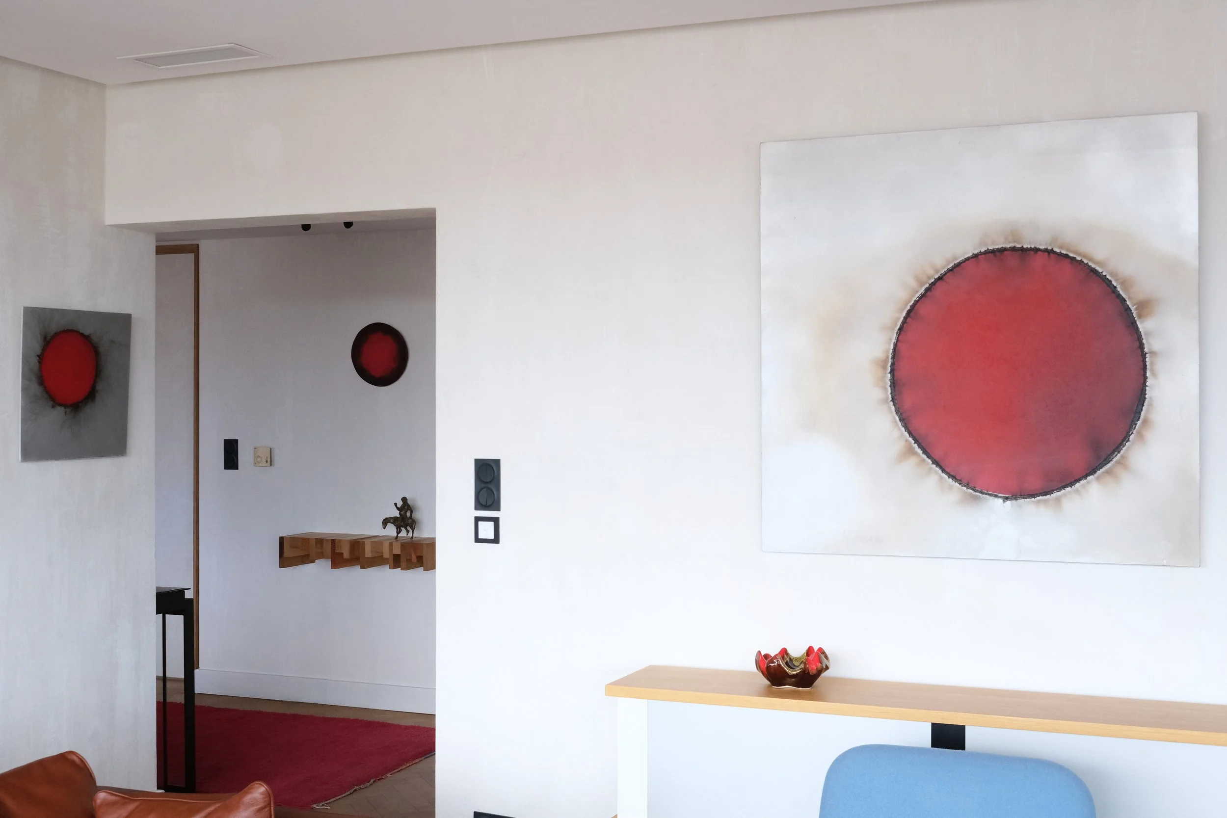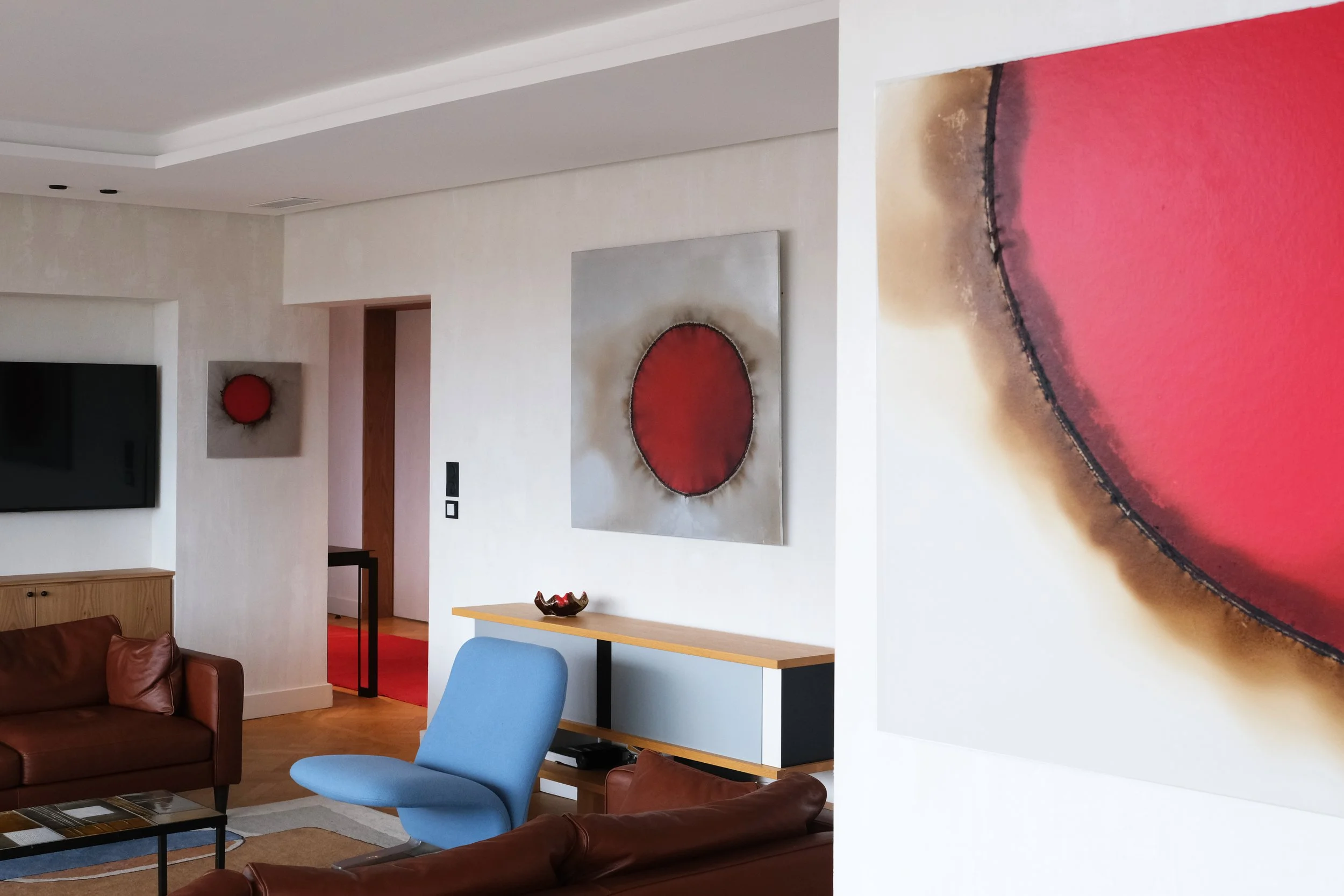 B.M. : Dans ton travail tu utilises 3 couleurs, le rouge, le blanc et le noir. Toujours dans la symbolique ?
